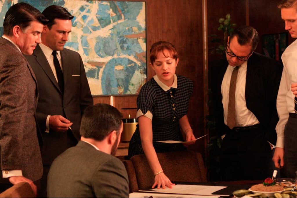 5. Una parte fundamental del liderazgo está en inspirar a tus trabajadores. Como consultores de empresas, creemos que es esencial que los directivos sepan cómo motivar y ser un referente para sus trabajadores y colaboradores. En este sentido, una vez más vemos cómo la relación de Don Draper con el equipo de creativos, y en especial con Peggy, apunta mucho hacia la mejora continua y los nuevos retos.